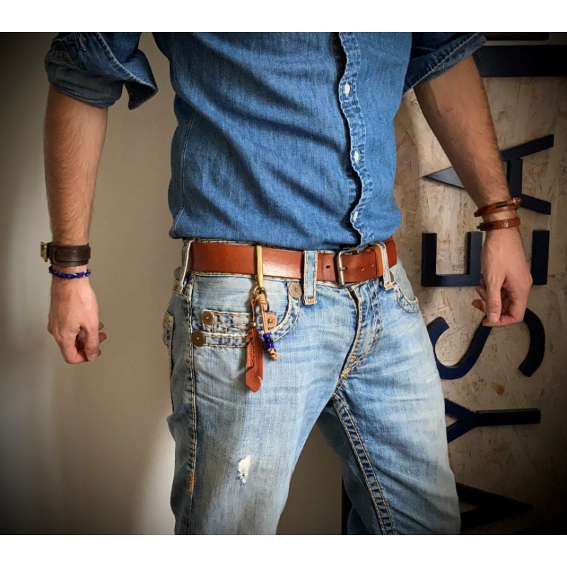 Leather and brass keyring